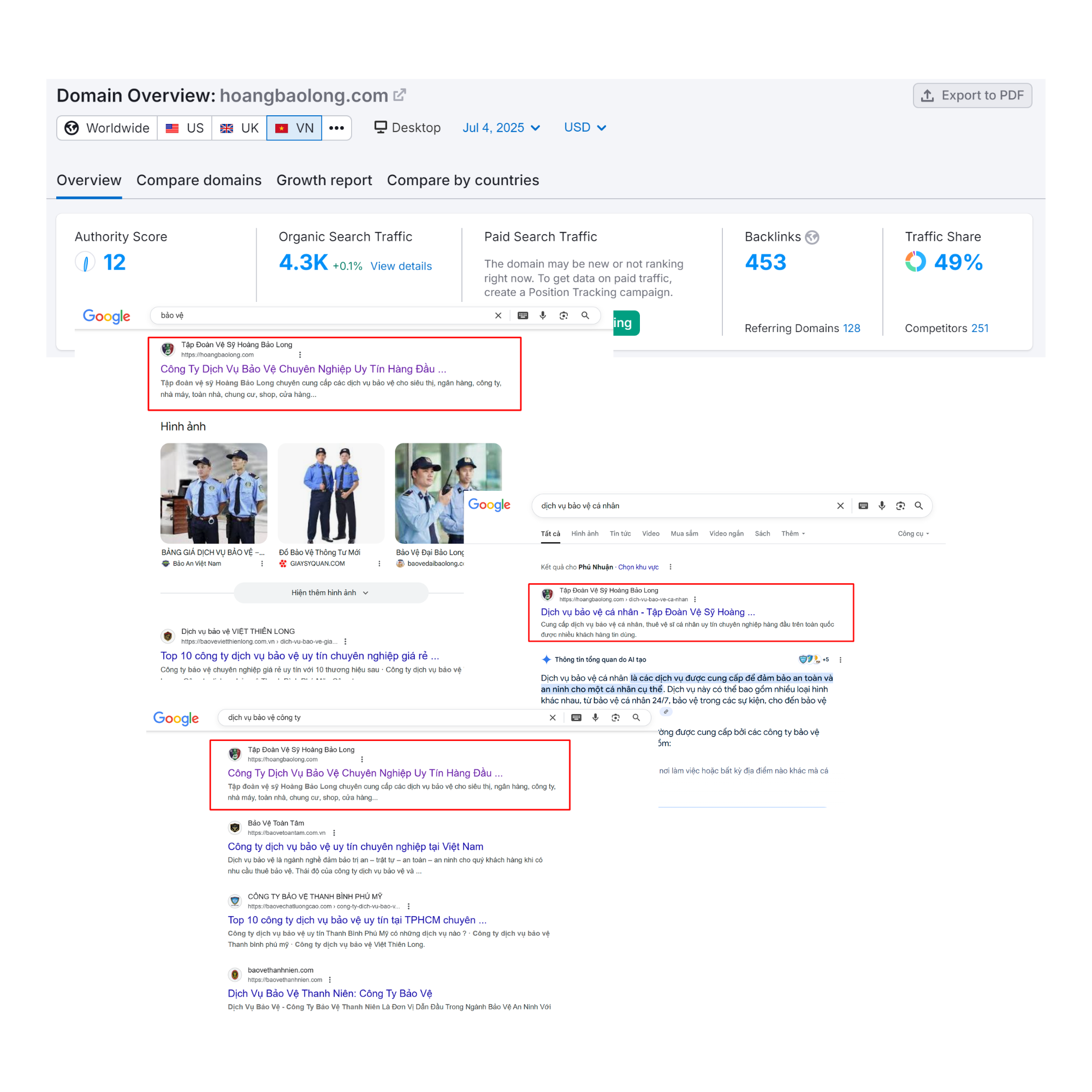 * Mức độ hiệu quả: Lưu lượng truy cập, từ khóa ranking…