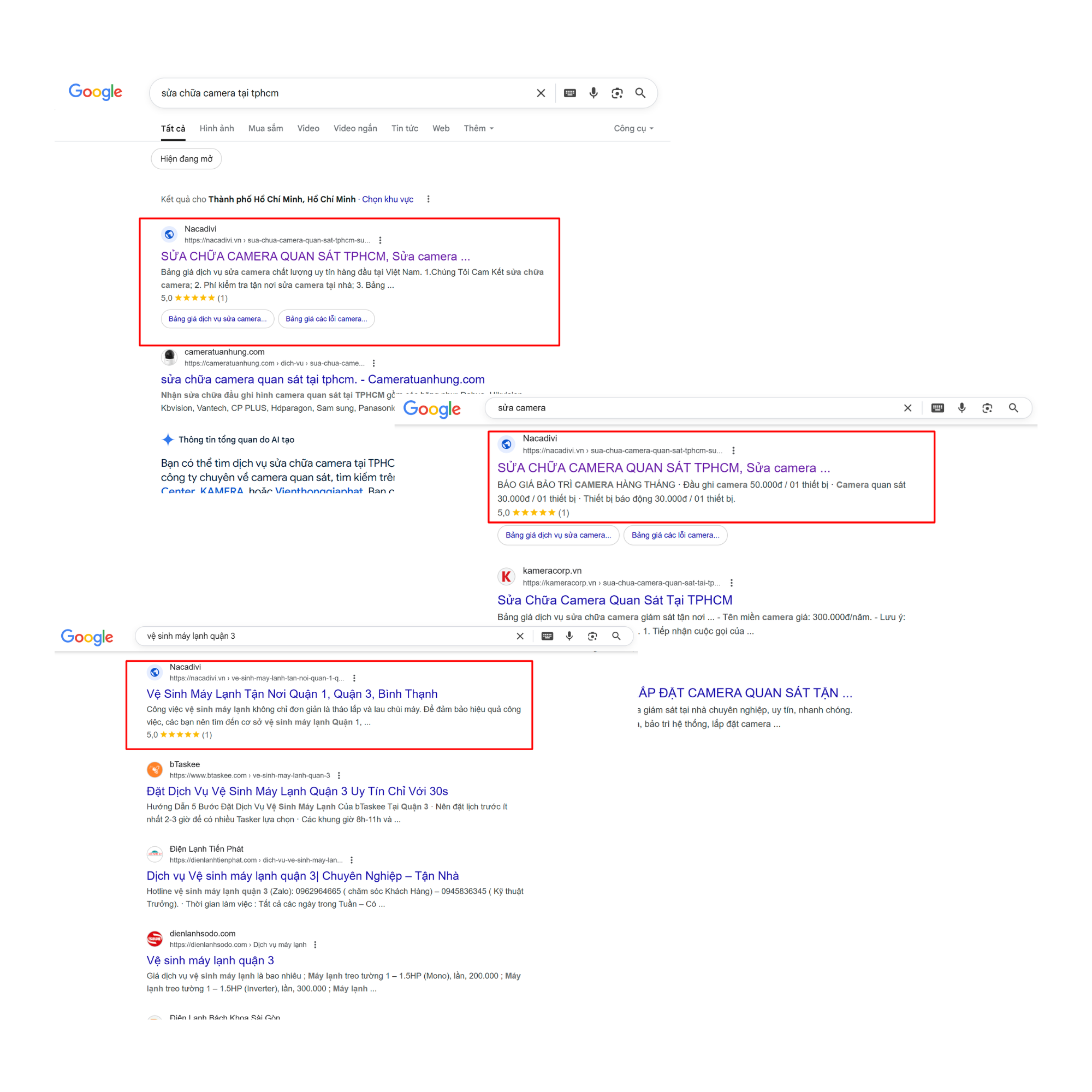 Nacadivi là công ty kinh doanh lĩnh vực sửa camera. Alenco đã thúc đẩy website Nacadivi phát triển, trở thành nơi thu hút khách hàng rất tốt.
